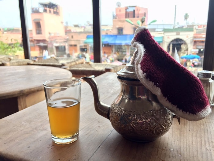 Moroccan mint tea also is everywhere. This is what the locals drink (aside from juice). Afternoons in cafes are packed with people having tea, and sometimes coffee. Happy hour features sweet mint tea – with no alcohol in sight, unless you are in an restaurant or hotel that caters to tourists. Many Muslims stay away from intoxicants, like alcohol.