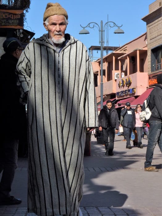 Men wear clothes that cover all skin as well. Many younger men wear jeans and sweatshirts. Our visit was in January, when it’s actually chilly in this part of Northern Africa. Men of all ages wear long robes as coats. Some have pointy hoods. Women also wear long robes, but without pointy hoods.