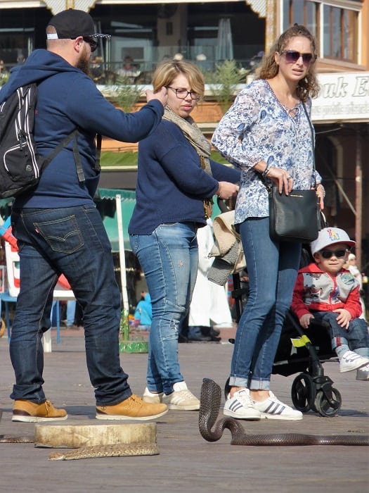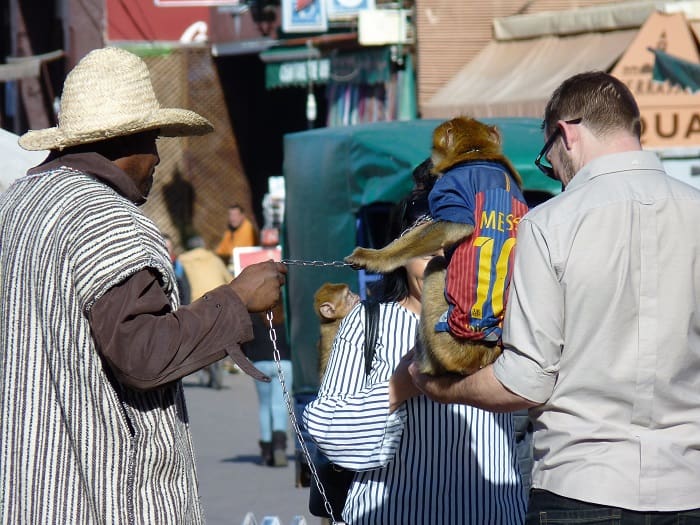 The scooters that race by pedestrians in the souks (markets) keep me on my toes, that’s for sure. The snake charmers playing a kind of clarinet and the men with monkeys on the square are interesting to watch because they draw tourists in for photos and donations.