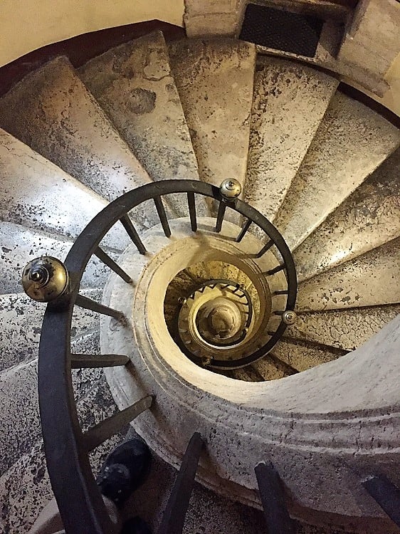 Just off to the side of the main altar is the grave of Italian sculptor Gian Lorenzo Bernini. The church also features Bernini’s famous “hidden” spiral staircase with no center support – the first of its kind. (You can only see this with a guide because it connects the church to apartments in use.)