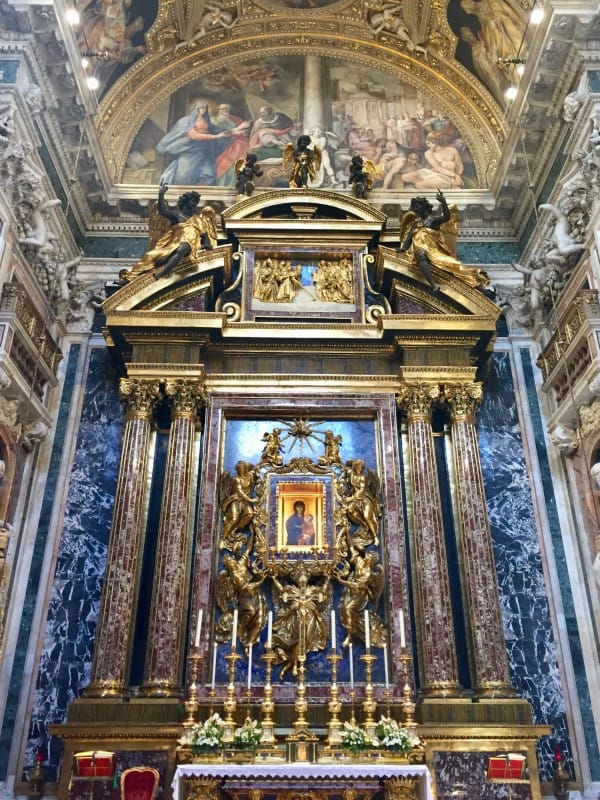 The Papal Basilica of Santa Maria Maggiore is where Pope Francis goes to pray. Our tour guide said he’s gone there many, many times. The Pope prays at the iconic image of Mother Mary.