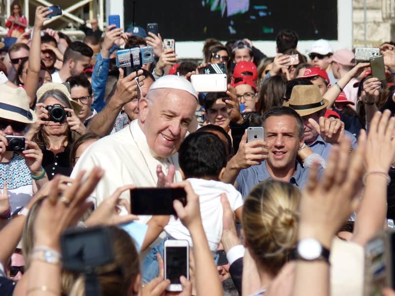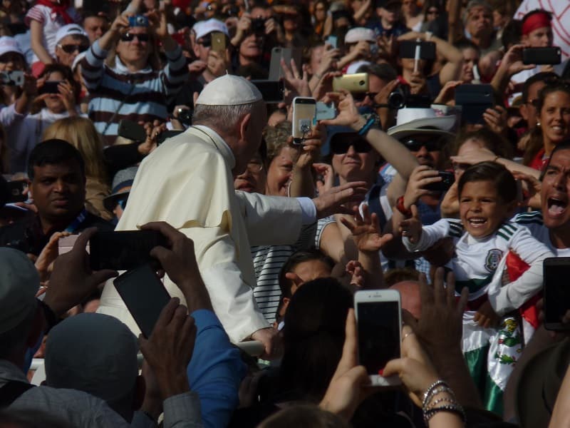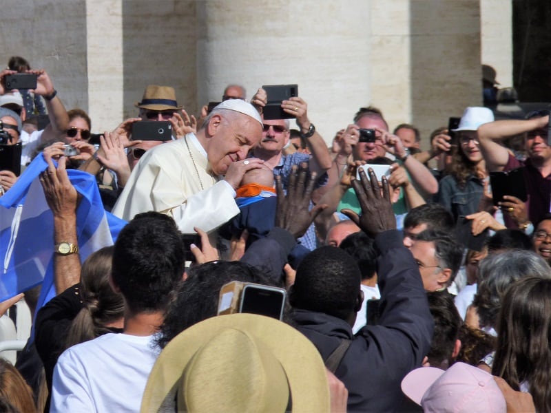 Pope Francis holds what’s called a “General Audience” each Wednesday when he’s in town. The event is at St. Peter’s Square in Vatican City.