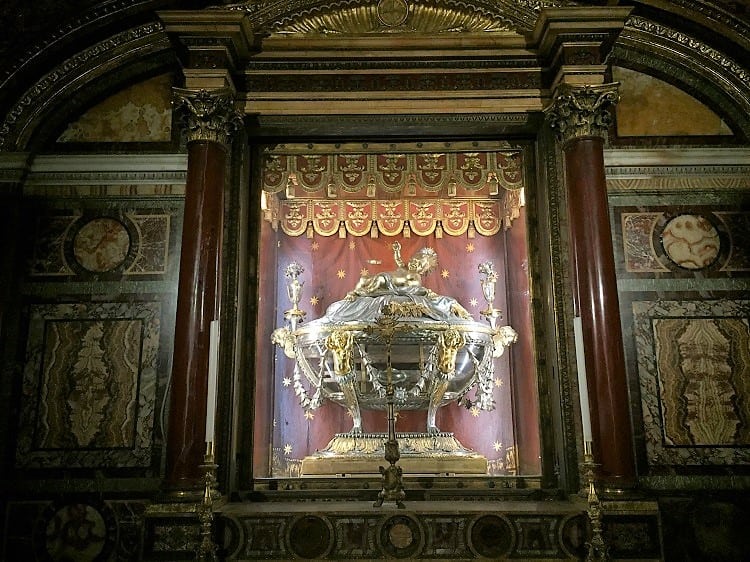 Just the amount of gold alone would make this place impressive. But it also has other incredible feature including: part of the manger. The Vatican calls the wood “The Holy Crib”. It’s in a crystal urn at the main altar.