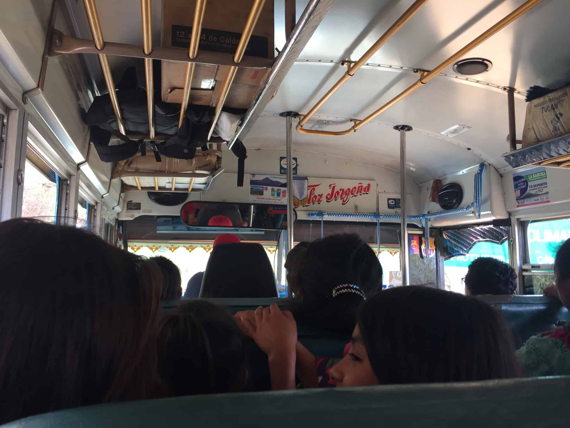 In Antigua’s bus area, find the bus going to where you want to be, get on, and pay the conductor once the bus is moving. In our case, there was no direct bus to Pana leaving anytime soon so we ended up getting on a bus headed for a small town en route to Pana, where we could transfer to a different bus. We did the transfer thing four times and rode four different chicken buses.