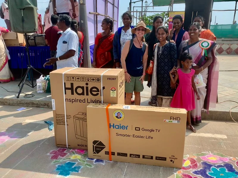 First place won a smart TV. Second place, a washing machine. Third place, a refrigerator. These are great prizes for the women from modest homes who we met on this day.