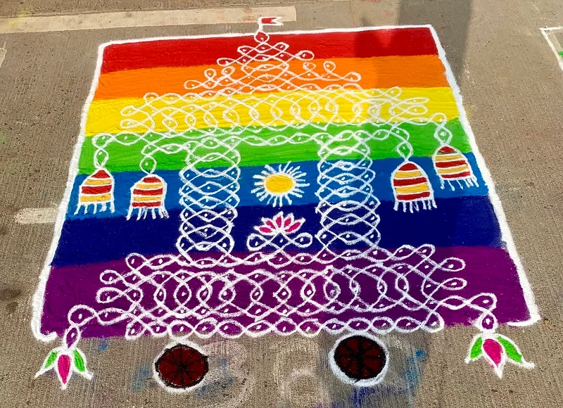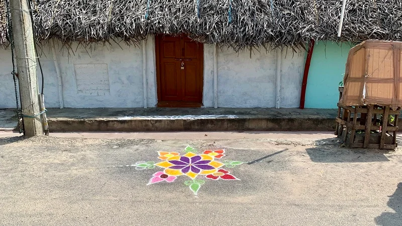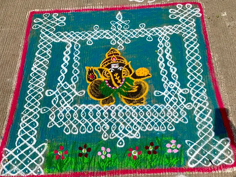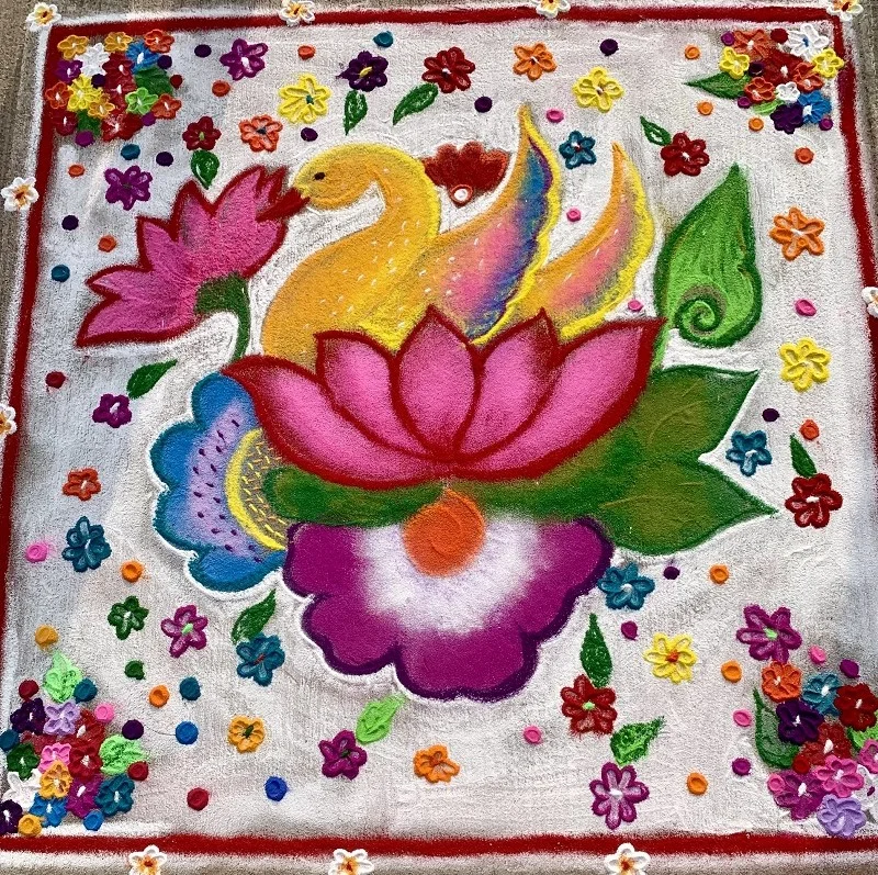 Kolam, also called rangoli in other areas of India, is a way for women to reflect their values and beliefs. While creating the art, some women pray and meditate. It’s also a way for women to connect to each other and their cultural roots.