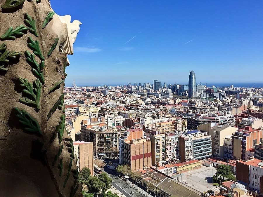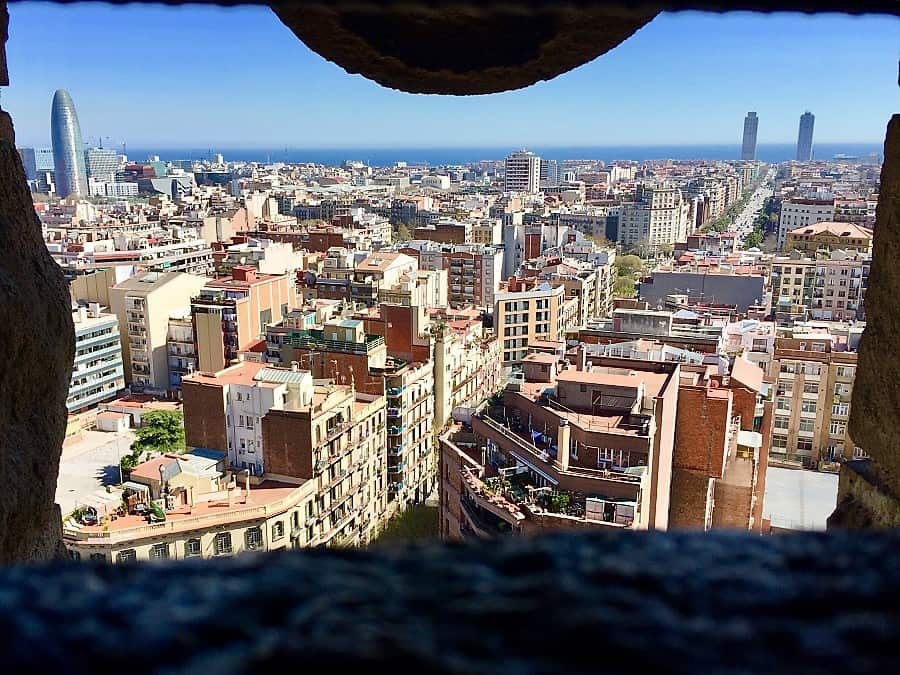 The topside reveals beautiful views of Barcelona and the Mediterranean Sea, and you can walk down cool spire stairwells with more views on the way down (an elevator takes you up).